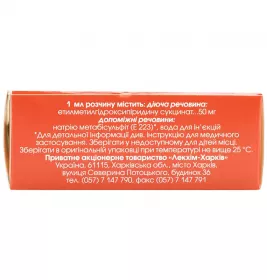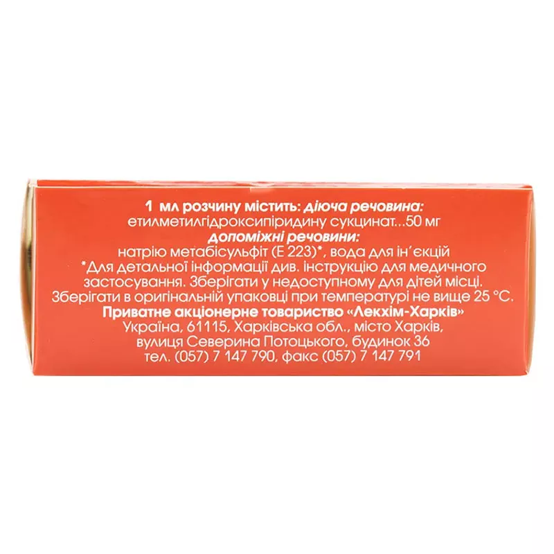 1 мл раствора содержит этилметилгидроксипиридина сукцината 50 мг;