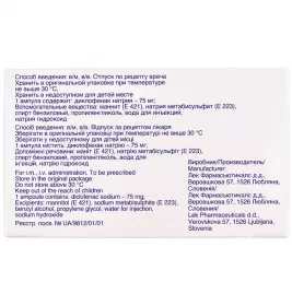 3 мл раствора содержат 75 мг диклофенака натрия (25 мг/мл);