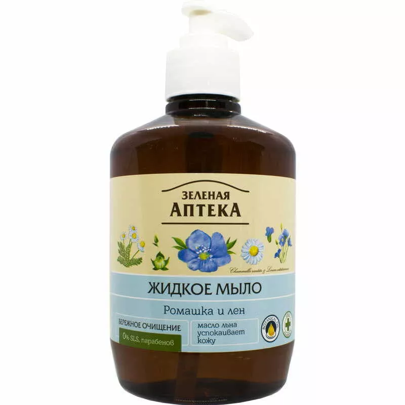 *ДУБЛЬ Мыло жидкое Зеленое аптека Ромашка и лен 460мл