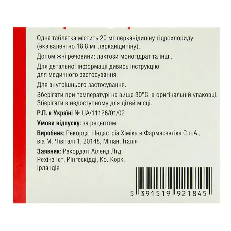 Занидип таблетки по 20 мг 98 шт. (14х7)