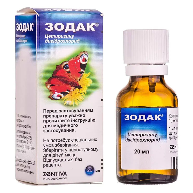 Сколько стоит Зодак капли 10 мг/мл по 20 мл во флаконе?